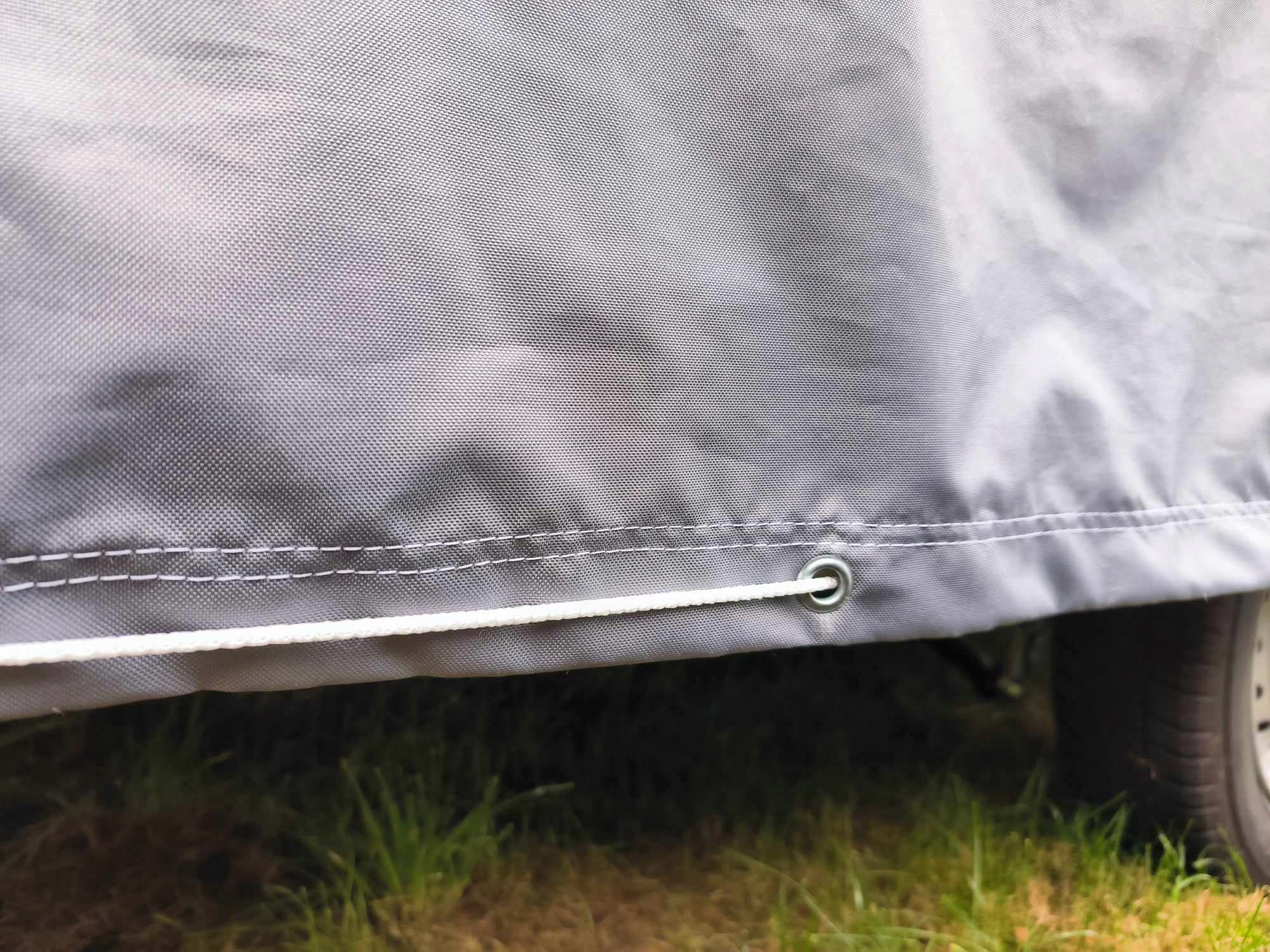 Pokrowiec bardzo dobrze dopasowuje się i przylega do przyczepy kempingowej.